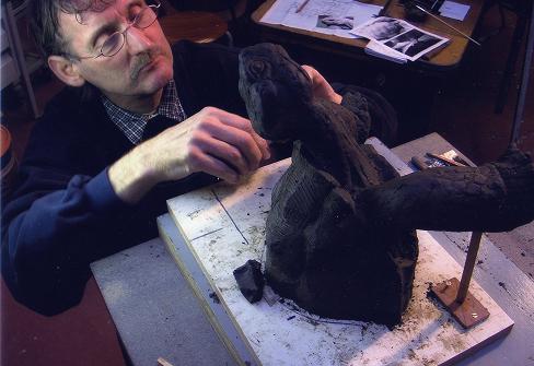 Naast mijn vrijwerk, assisteer ik ook kunstenaars bij het modelleren. Hier ziet u mij in het atelier van Beeldende kunstenaar Niko de Wit.